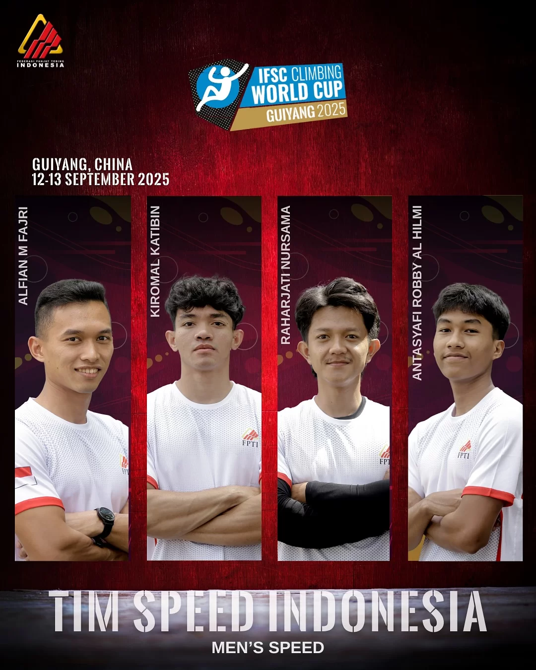 Pengurus Pusat Federasi Panjat Tebing Indonesia (PP FPTI) mengumumkan skuad tim panjat tebing nomor speed untuk mengikuti Piala Dunia International Federation of Sport Climbing (IFSC) Climbing World Cup Guiyang 2025 di China, pada 12–13 September.
